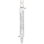 Professional-grade coil condenser manufactured from borosilicate 3.3 glass for efficient vapour condensation.