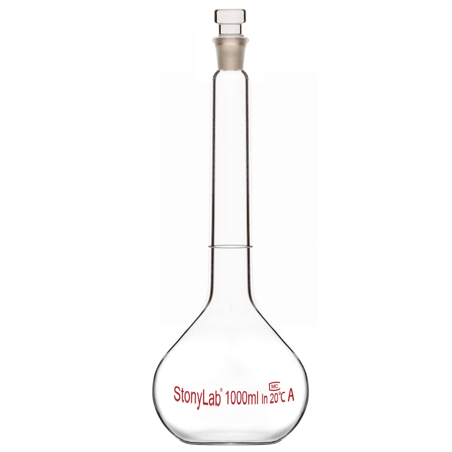 1000ml Class A borosilicate glass volumetric flask with ground glass stopper for preparing precise standard solutions.
